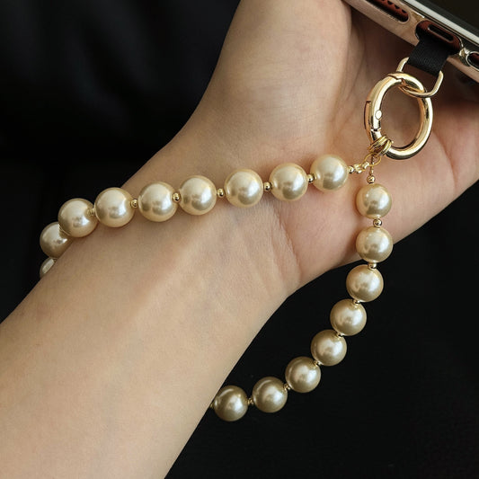 Beaded Phone Wrist Strap Phone Lanyard Hand Strap Detachable Phone Wrist Lanyard (Champagne)