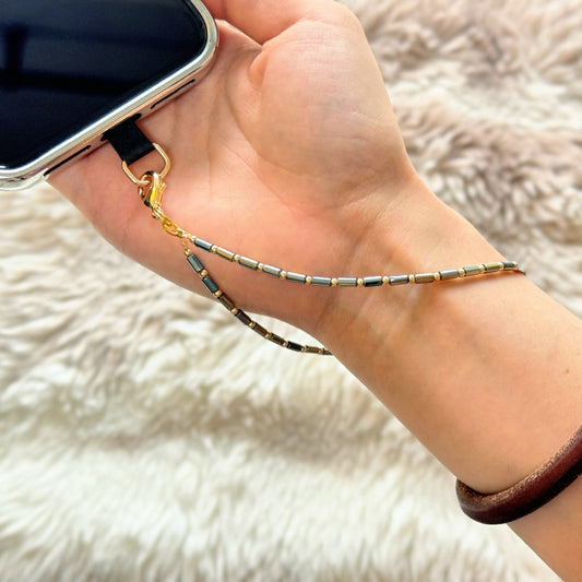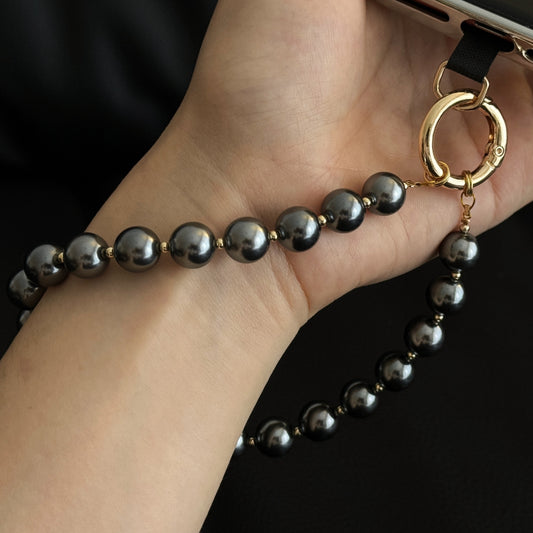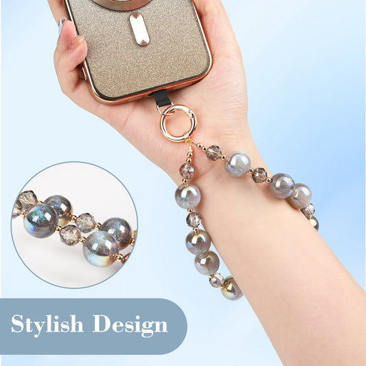 Beaded Phone Wrist Strap Phone Lanyard Hand Strap Detachable Phone Wrist Lanyard (Charcoal Grey)