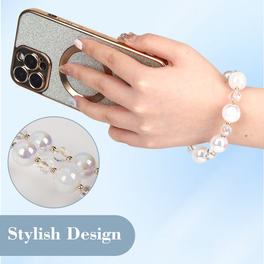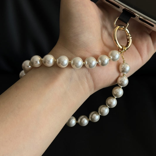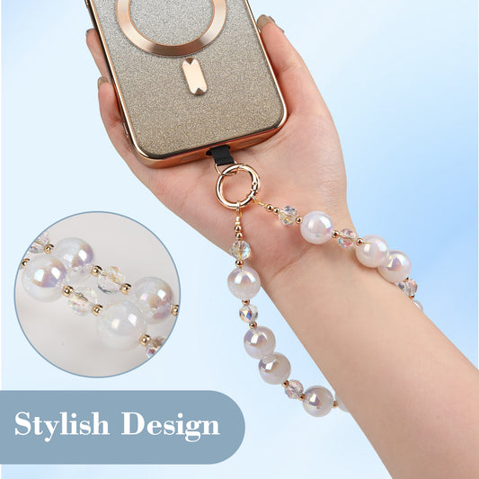 Beaded Phone Wrist Strap Phone Lanyard Hand Strap Detachable Phone Wrist Lanyard (Pearl White)