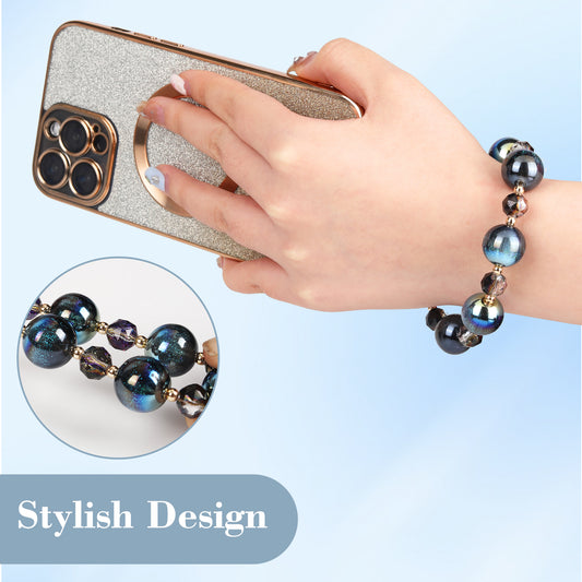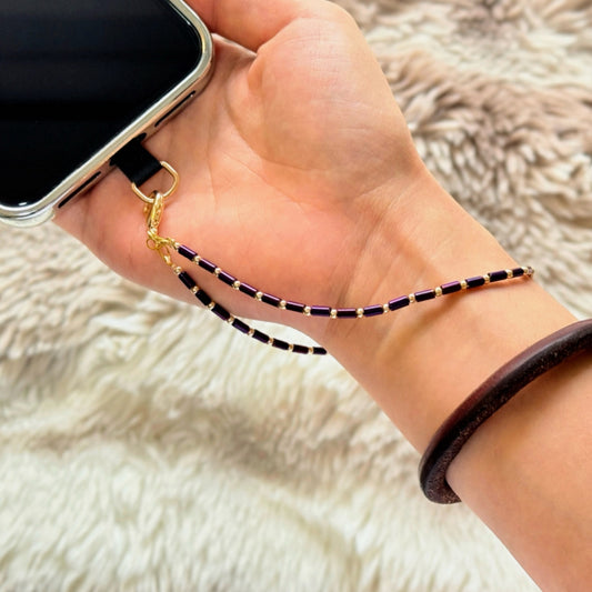 Cell Phone Charm Beaded Phone Charm Beaded Bracelet Hand Strap Phone Chains Wrist Lanyard with Phone Patch (Gloss Midnight Purple)