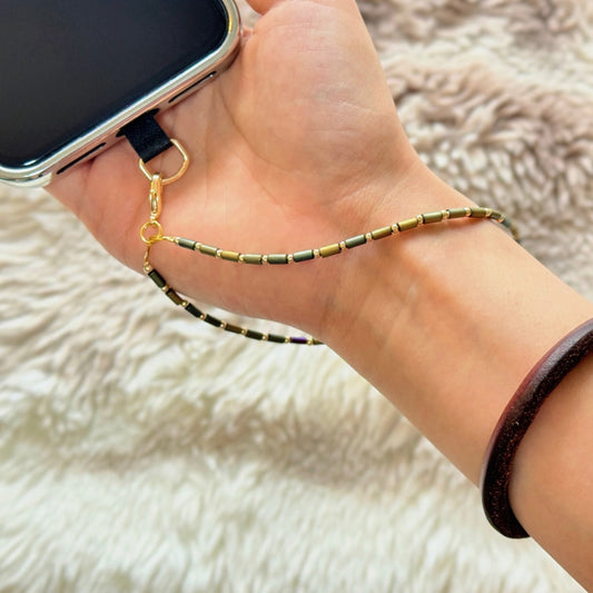 Cell Phone Charm Beaded Phone Charm Beaded Bracelet Hand Strap Phone Chains Wrist Lanyard with Phone Patch (Matte Green/Gold)