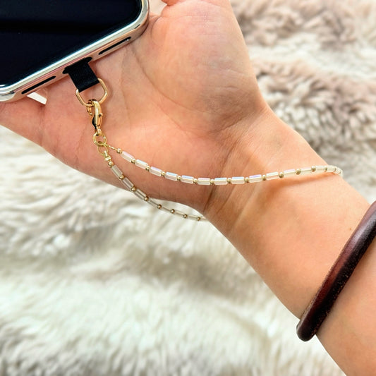 Phone Wrist Lanyard Cell Phone Lanyard Phone Strap Wristlet with Phone Patch Beaded Phone Wrist Strap (Ivory)