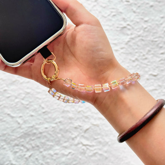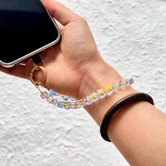 Phone Wrist Strap Beaded Cell Phone Charm Hand Strap Crystal Phone Lanyard Detachable Phone Chain (Clear)