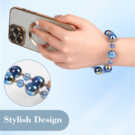Cell Phone Charm Beaded Phone Charm Beaded Bracelet Hand Strap Phone Chains Wrist Lanyard with Phone Patch (Gloss Blue/Gold)