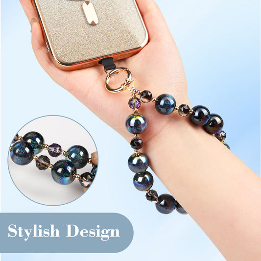 Phone Wrist Lanyard Cell Phone Lanyard Phone Strap Wristlet with Phone Patch Beaded Phone Wrist Strap (Galaxy)