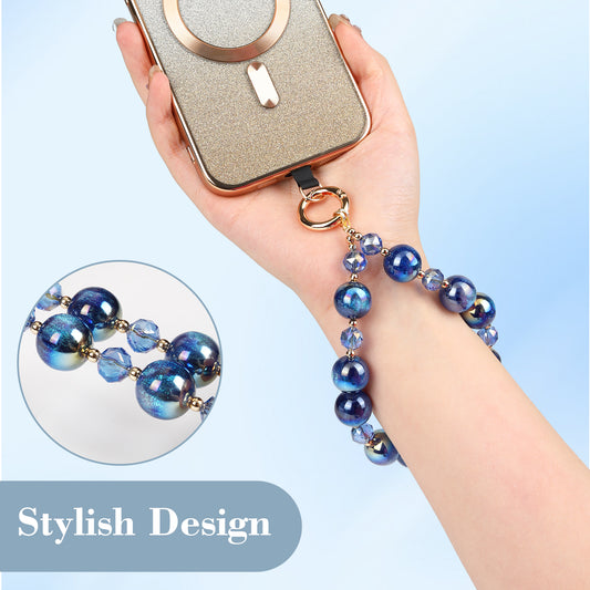 Phone Wrist Lanyard Cell Phone Lanyard Phone Strap Wristlet with Phone Patch Beaded Phone Wrist Strap (Ocean)