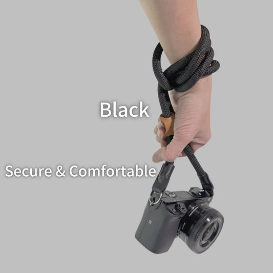 Camera Strap Crossbody Camera Neck Shoulder Strap 127cm Climbing Rope for Photographers Lanyard 10mm Thick - Black