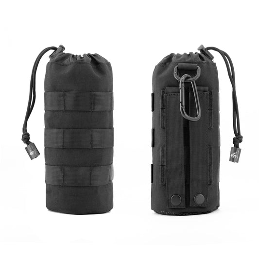 Molle Water Bottle Pouch Tactical Water Bottle Holder Military Drawstring Hydration Carrier (Black)