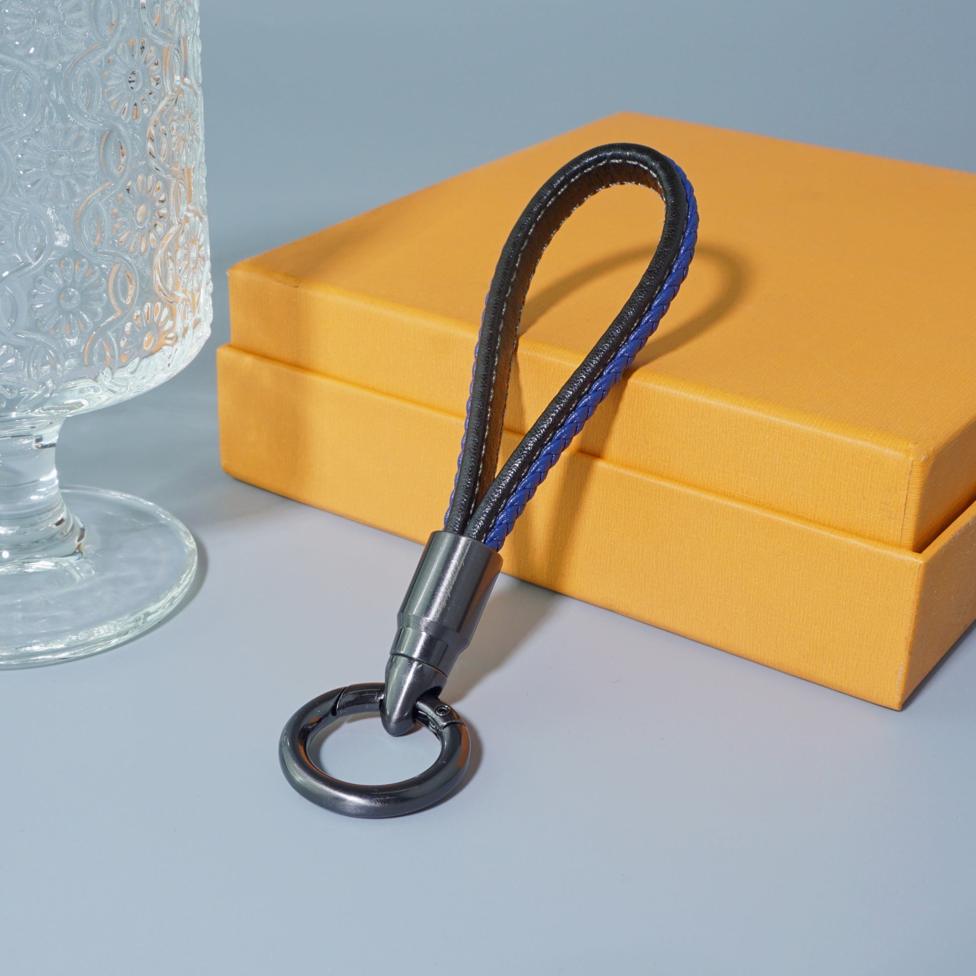 This premium car key chain combines leather material with a woven stripe design, enhanced by meticulous stitched detailing for a luxurious and distinctive look. Featuring a zinc alloy bullet-shaped metal clasp with 360° rotation, it is stylish, practical, and elegant. The keychain includes a detachable D-shaped hook and two small metal rings for added convenience, making it suitable for car keys and other daily keys. It’s an excellent choice for gifting to family, friends, or loved ones.