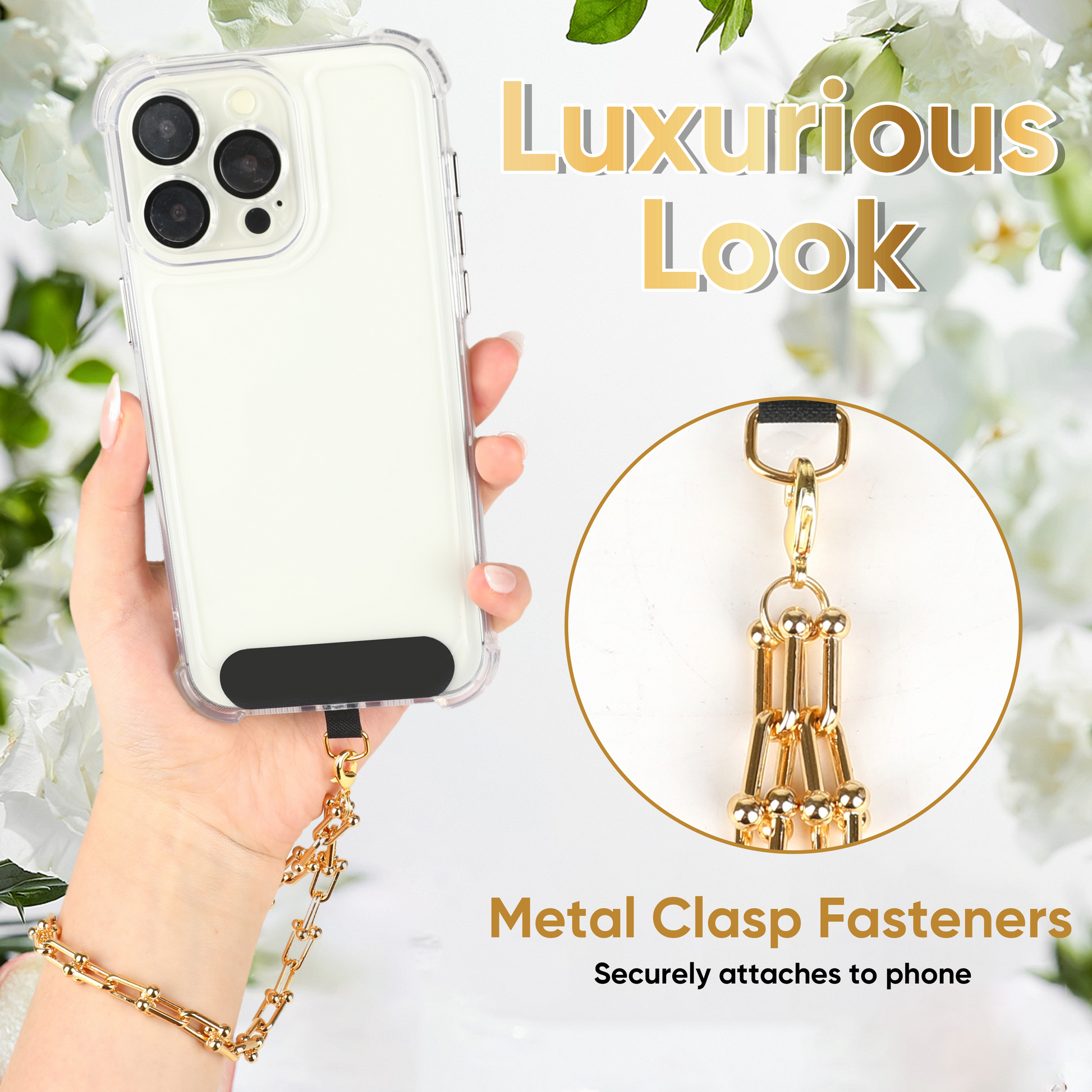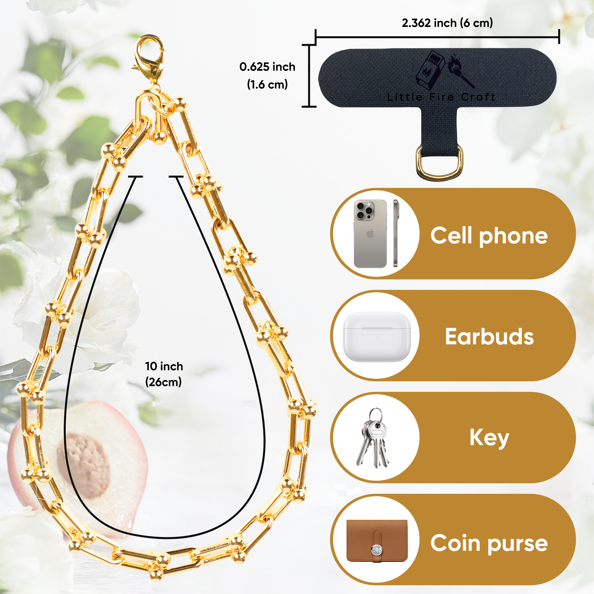 - Our phone wrist strap is sophisticated design of metal chain with an eye-catching horseshoe shaped buckle, perfect size of 10 inch (26cm) length.
