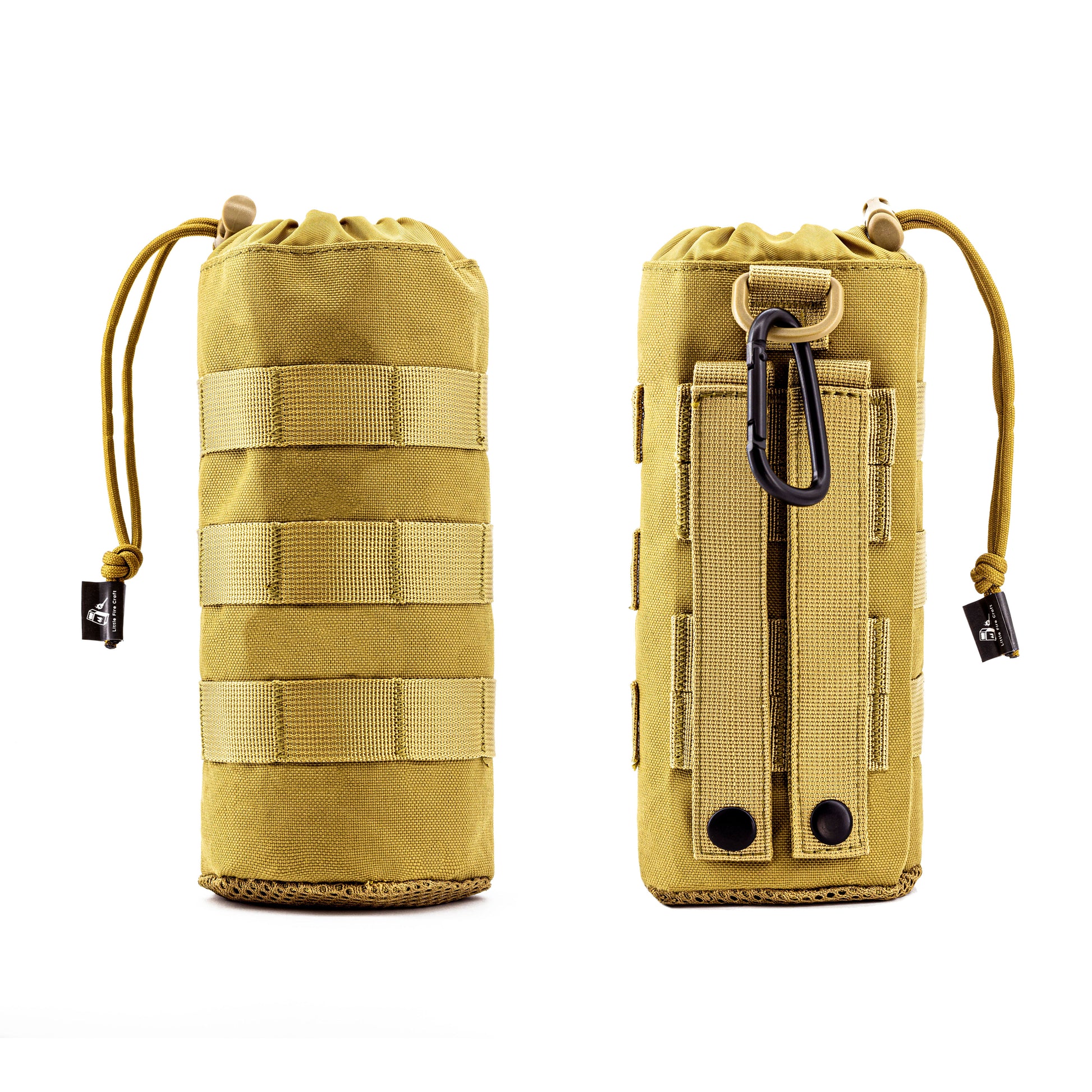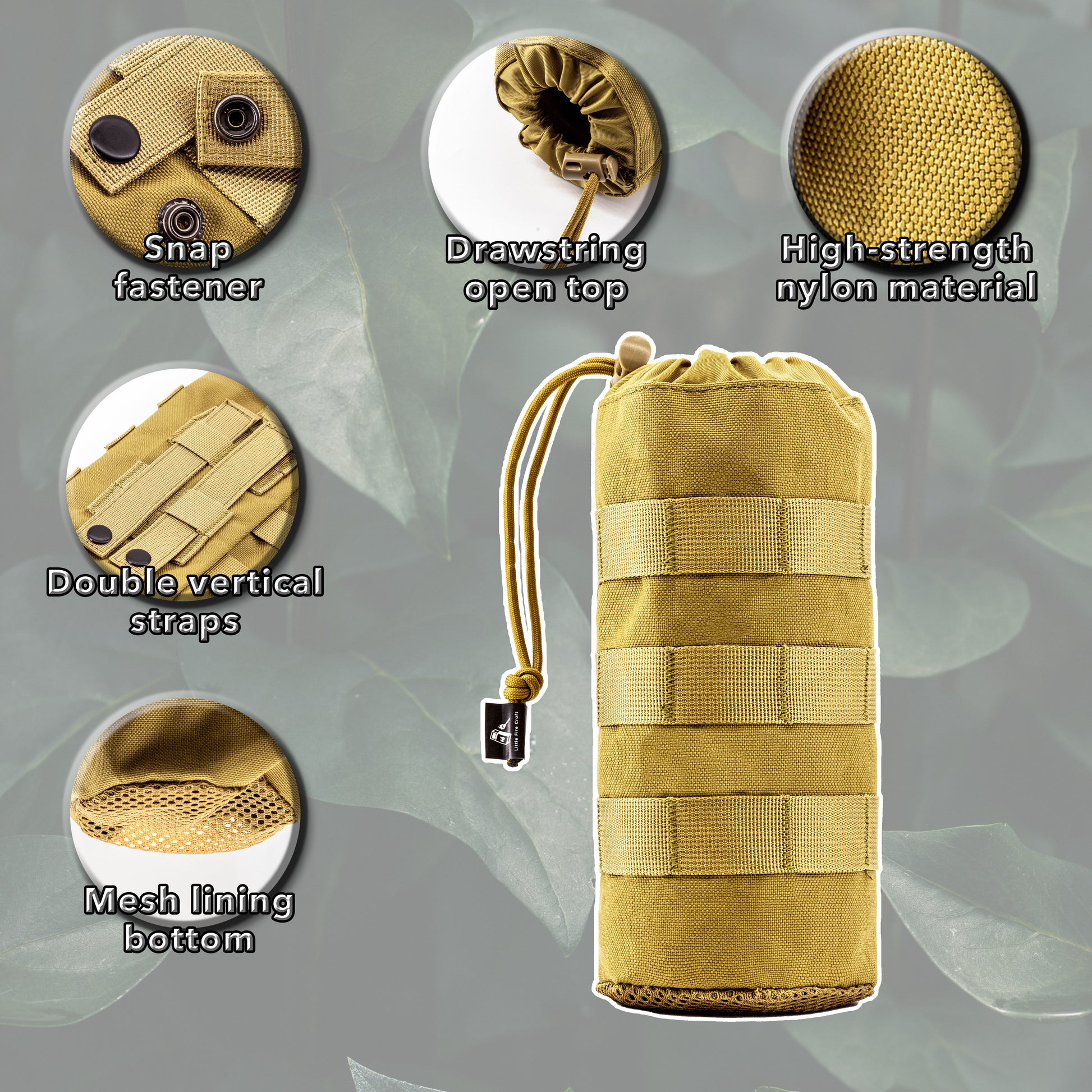 Molle Water Bottle Pouch Tactical Water Bottle Holder Military Drawstring Hydration Carrier (Tan)