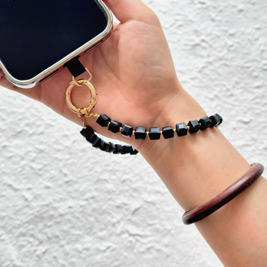 Phone Wrist Strap Beaded Cell Phone Charm Hand Strap Crystal Phone Lanyard Detachable Phone Chain (Matte Black)