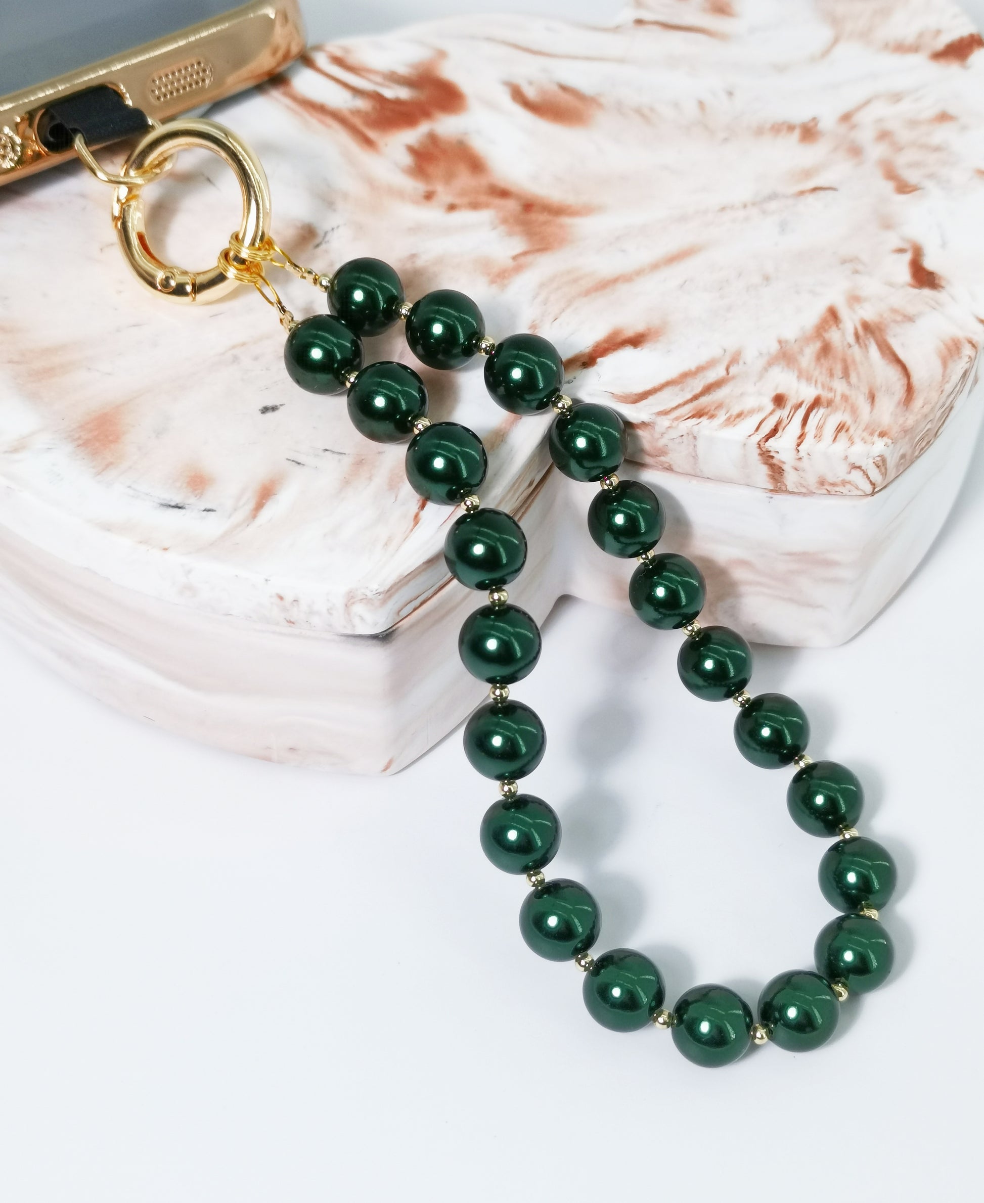 Beaded Phone Wrist Strap Phone Lanyard Hand Strap Detachable Phone Wrist Lanyard (Dark Green)