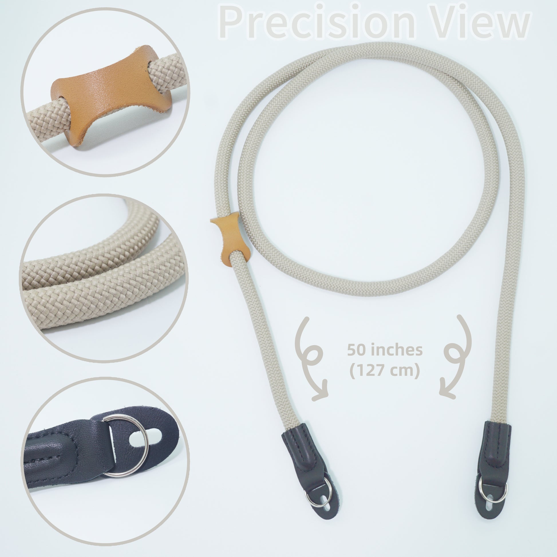 Designed specifically for photography enthusiasts, this Camera Strap combines practicality with comfort. Made from premium 10mm thick rope, it boasts a durable and comfortable design with a length of 50 inches (127 cm). Both ends are reinforced with leather edges and precision stitching for added safety and longevity.