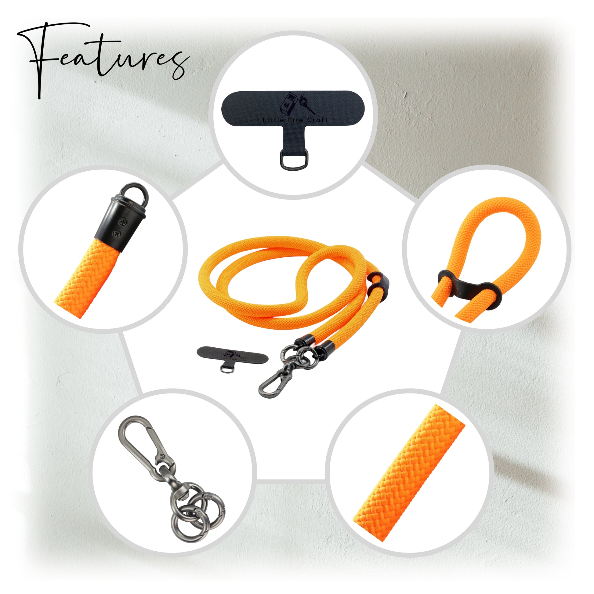 Cell Phone Lanyard Crossbody Rope Around The Neck Wrist Strap for Most Smartphone Case Headset Keychain Offices ID - Orange
