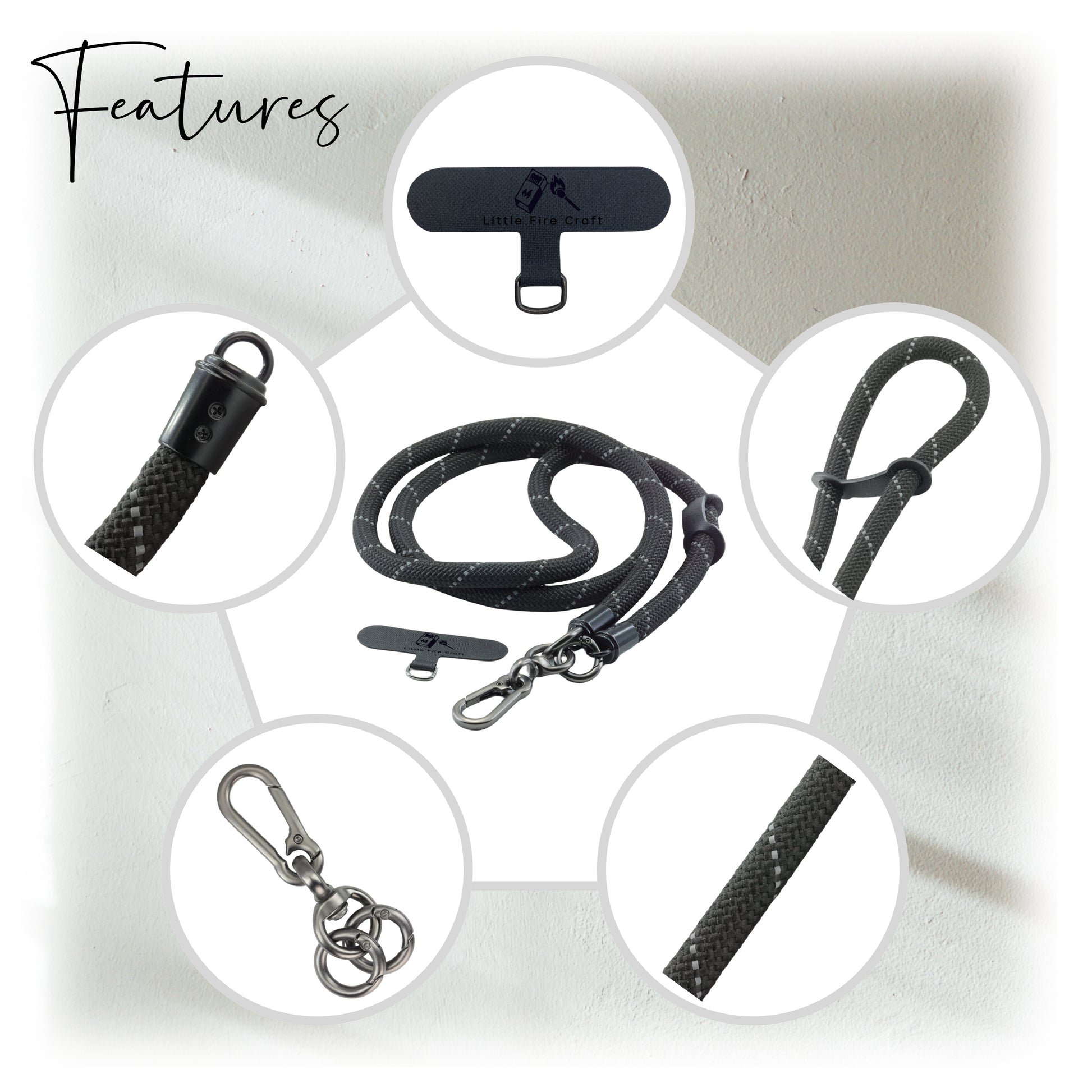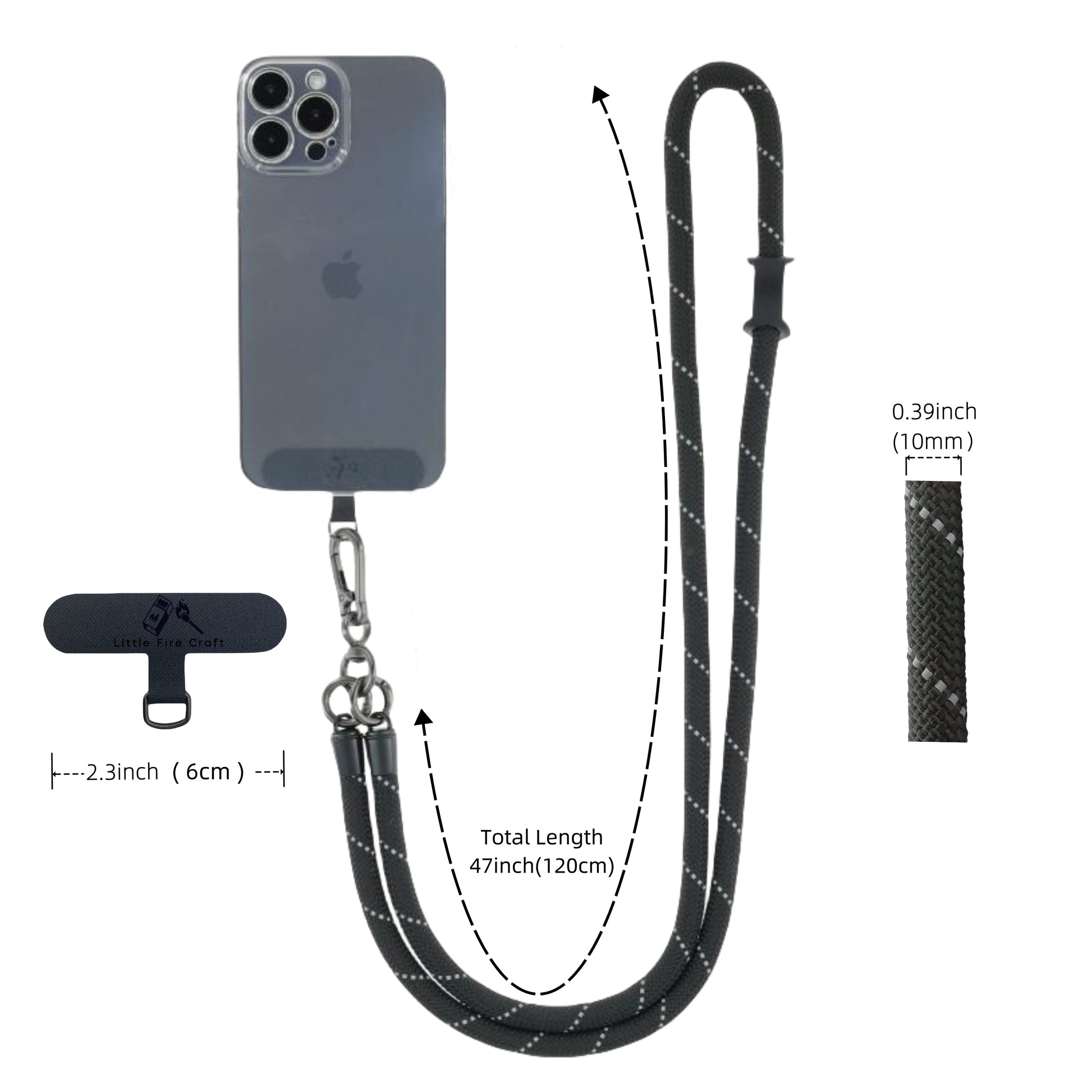 Cell Phone Lanyard Crossbody Rope Around The Neck Wrist Strap for Most Smartphone Case Headset Keychain Offices ID - Black Reflective