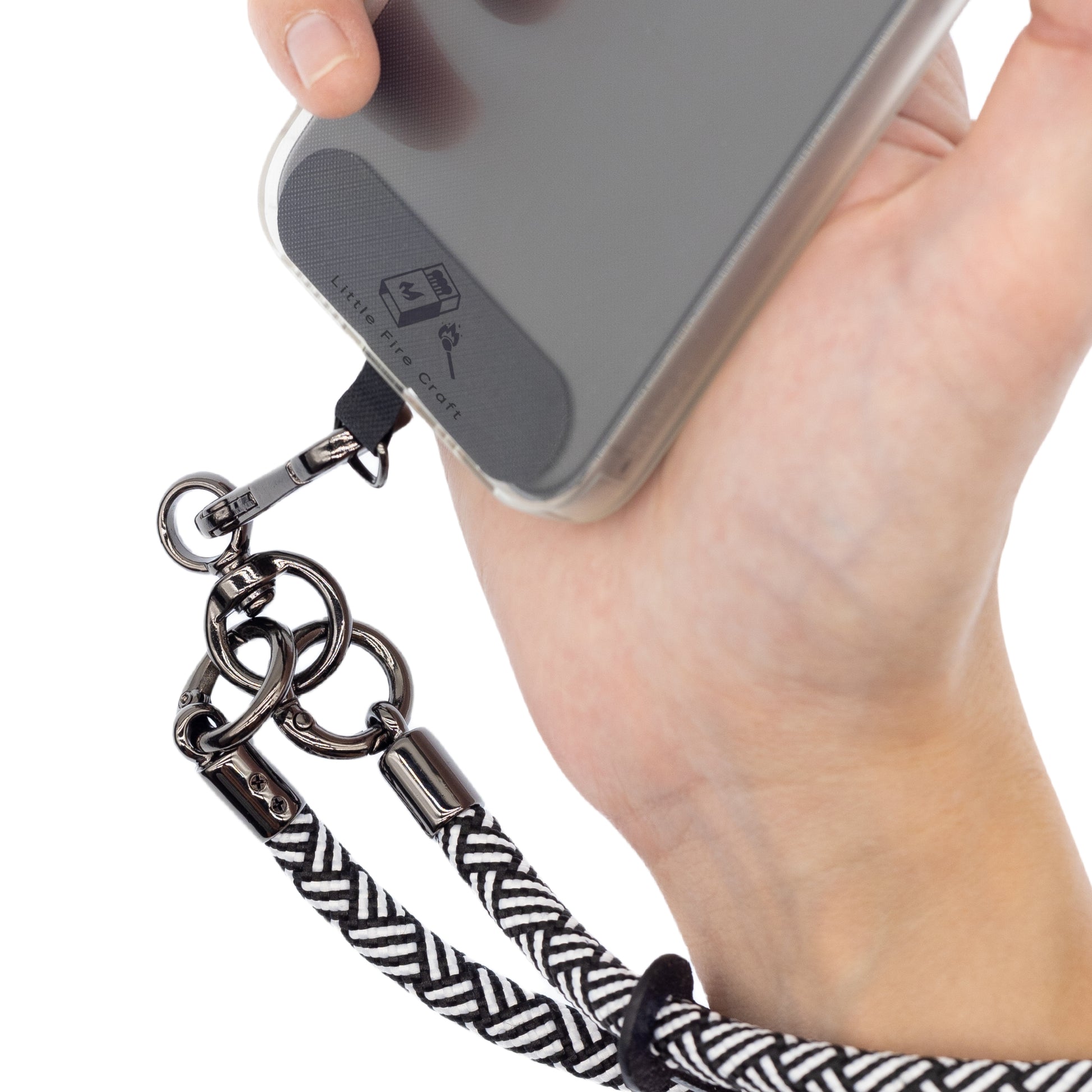 • Package Content, 4x Black Phone Lanyard Tether Tabs with Silver Black D shape Metal Ring.