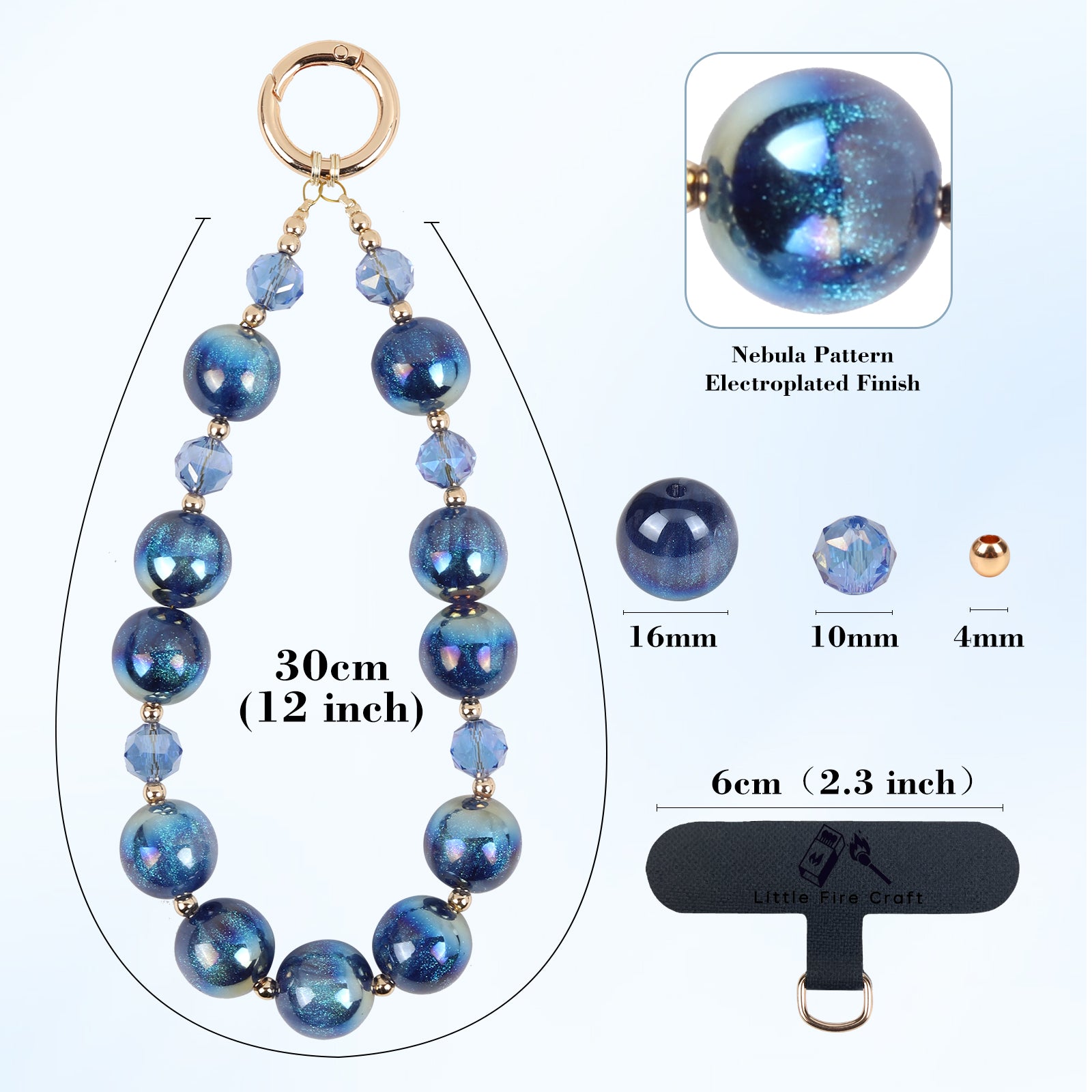 • The cell phone wrist strap are made of 16 mm nebula pattern electroplated finish beads with 10 mm faux crystals and 4 mm gold color metal beads. A range of colors to match different personalities and preferences.