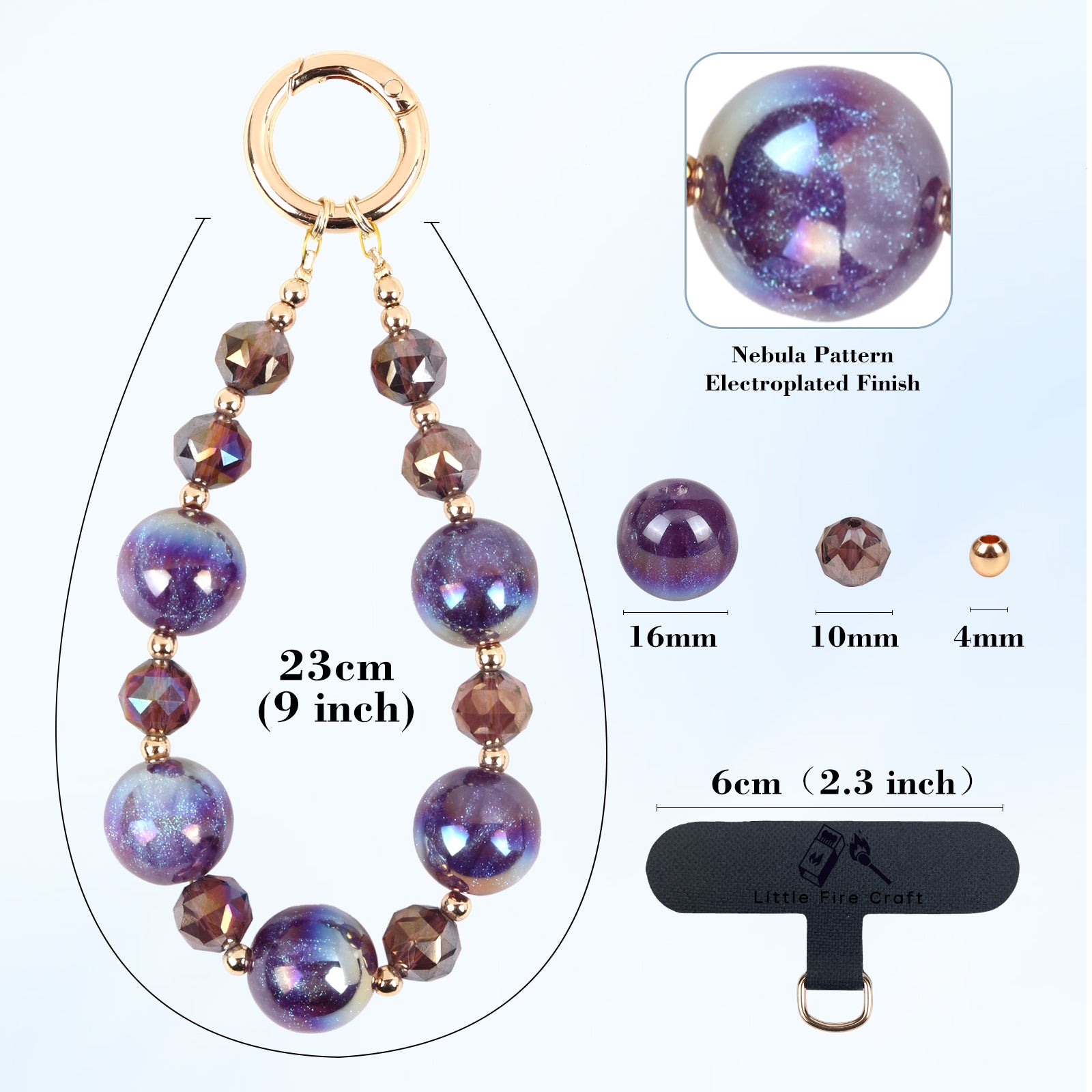 • Our cell phone lanyard are made of 16 mm nebula pattern electroplated finish beads with 10 mm faux crystals and 4 mm gold color metal beads. Whether you prefer subtle elegance or vibrant colors, our beaded phone chain has the perfect option for you.